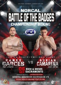 Two hungry warriors are in powerhouse training camps, preparing for their ring debuts. UCA Jr Cruiserweight’s Rance Garces, FBOP – Atwater and Adrian Camarena representing CDCR – CSP Sacramento are set to collide in a high stakes battle that promises fireworks.